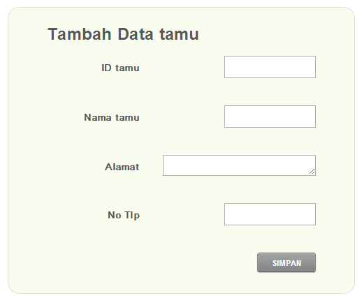 tampilan di atas kami memberi contoh menu tambah pada data tamu, berdasarkan ID
